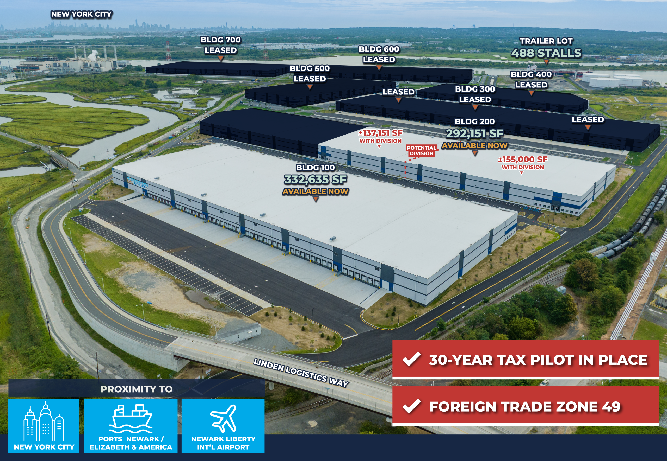 | Trailer Lot | 488 | 488 trailer spots. Can be combined with buildings 100 / 200 / 300. | June 2023 |